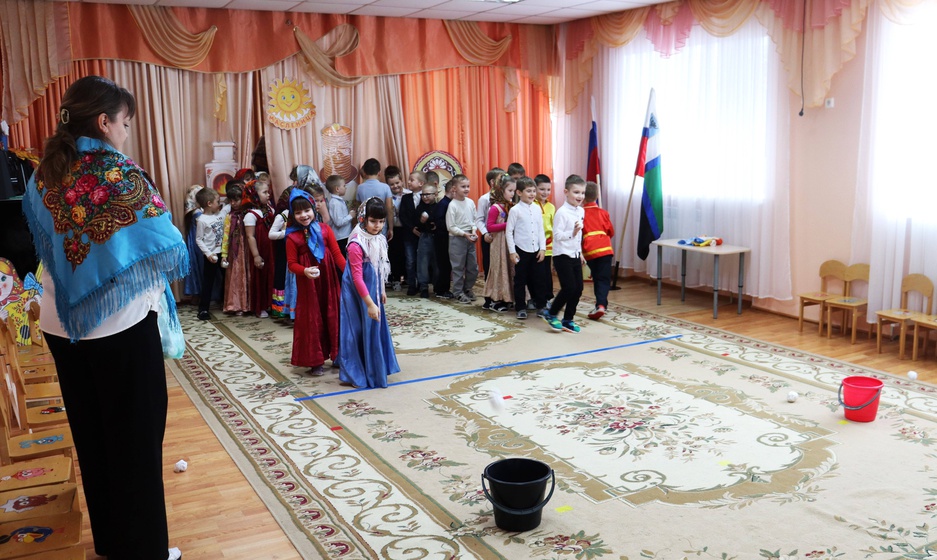 После весёлого кукольного представления детишки с удовольствием играли в народные подвижные игры и водили праздничный хоровод с лентами.